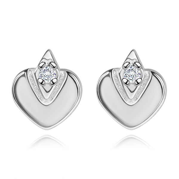 These delicate earrings made of 14K white gold will delight all lovers of romantic accessories. They have the shape of a subtle heart complemented by a faceted V-shaped cut. At the top sits a zircon set in an elegant rhombus setting. Their overall look is soft and modern. The push back closure ensures comfortable and practical wear.