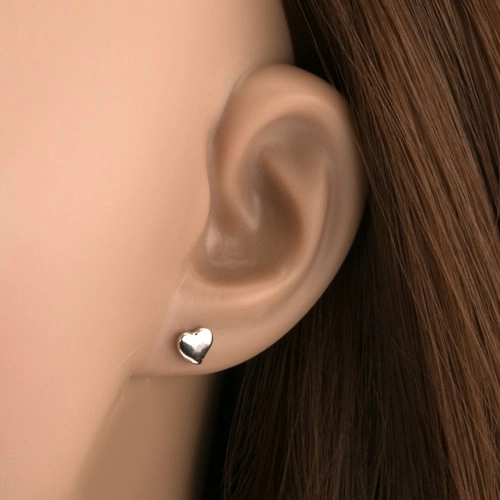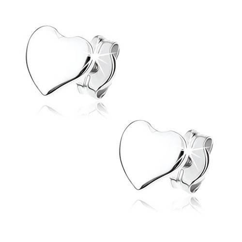 Gold stud earrings in the shape of a smooth heart made of white 9K gold with high shine. The timeless design is complemented by a simple and secure pin and brake closure.