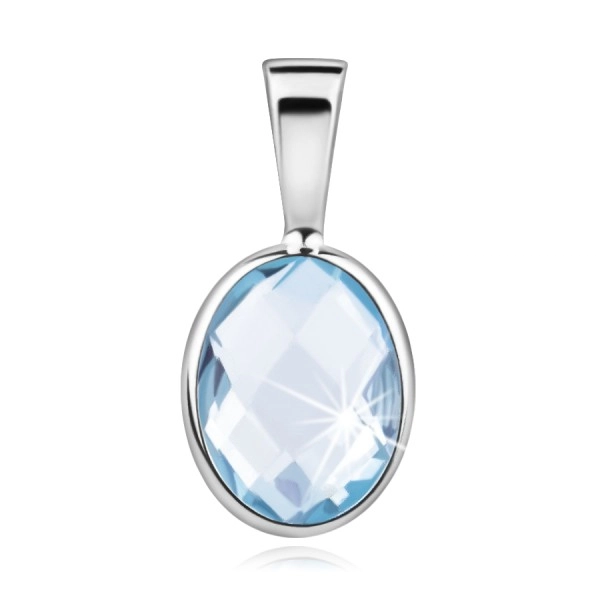 585 White gold pendant, cut light-blue oval-shaped topaz with a smooth edge.